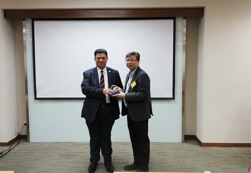 香港职业训练局副执行干事廖世乐博士工程师(右) 致送纪念品予 宝力机械执行董事黎啟东先生(左)