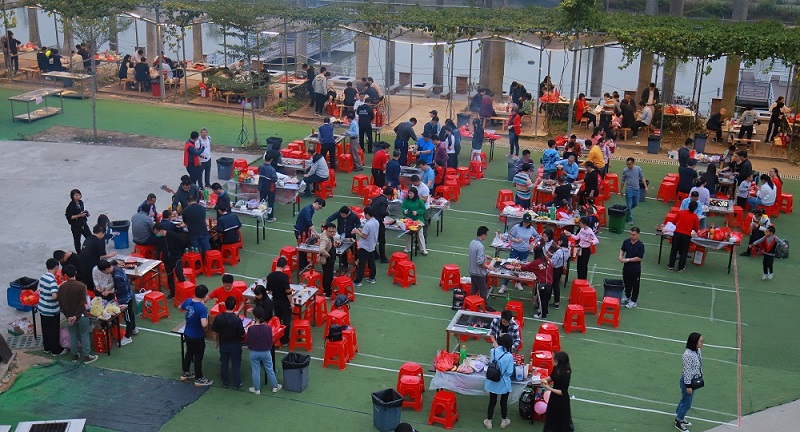 团建活动结束后,是员工及家属盼望已久的烧烤活动及员工生日会。经过一个下午的团建活动,大家都饥肠辘辘,都各自动手开始美味的烧烤。