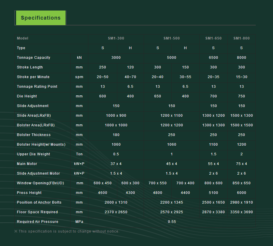 • Produce well for over 6mm thick plate stamping.Link motion with a reduced touch speed and caused less vibration, noise and extended tooling life.