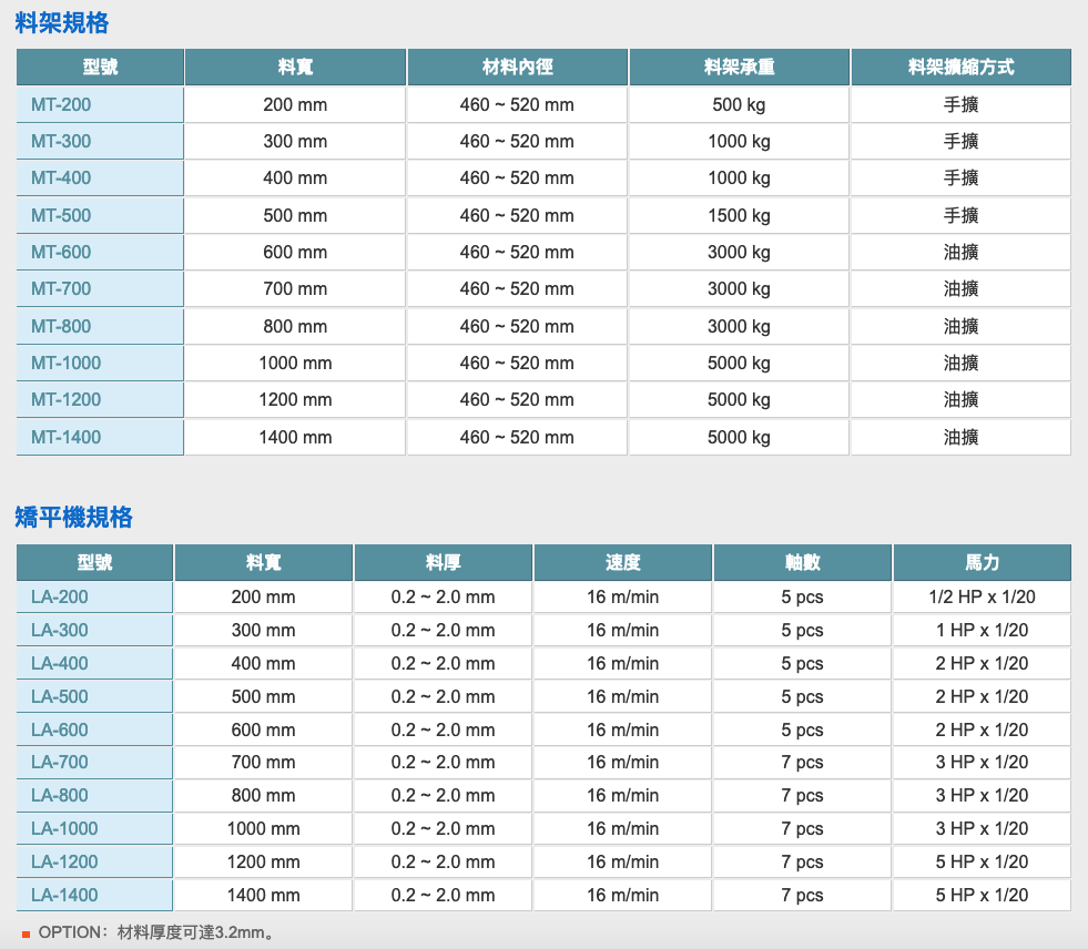 料架荷重可達5000kg,整平厚度可達3.2mm。