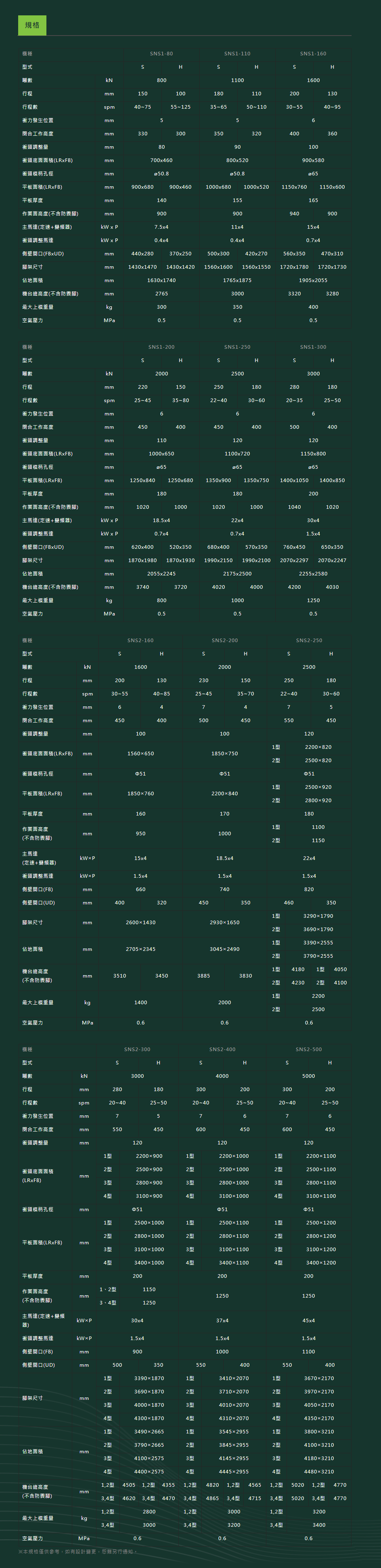 一般適合於小型,單工程薄鋼板及連續鏌零件之下料、沖孔、折曲、成型工作,可單沖、連續鏌、機械手連線或是加傳送系統的作業。