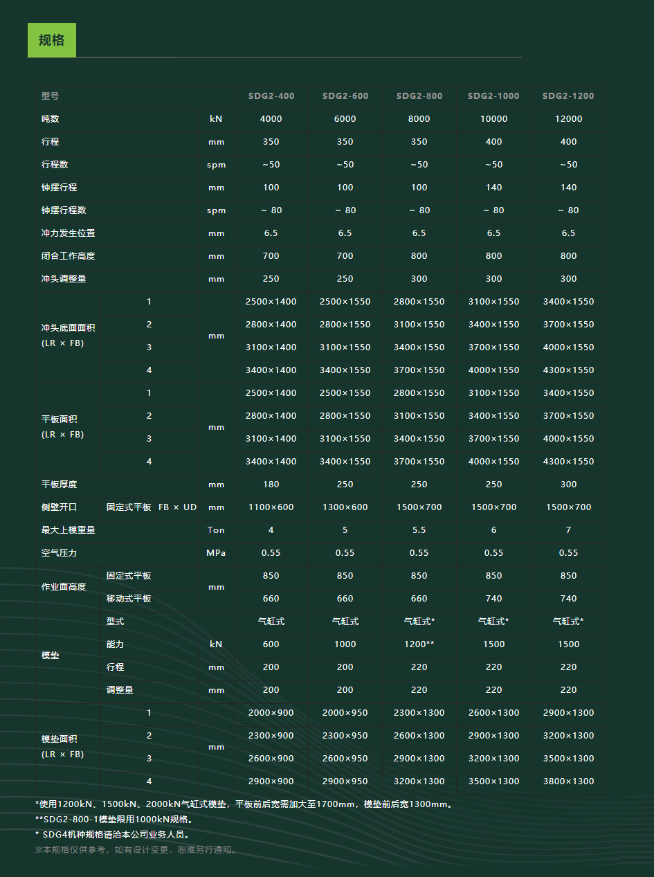 The best features for model SDG includes drawing, forming, blanking, punching and cutting of automotive parts, which comply and satisfy the trend and application of steel parts with light weight but high tensile strength in modern automotive industry. In addition, by combining progressive die with pendulum curve, the productivity can possibly be doubled, which saves more than 50% of energy.