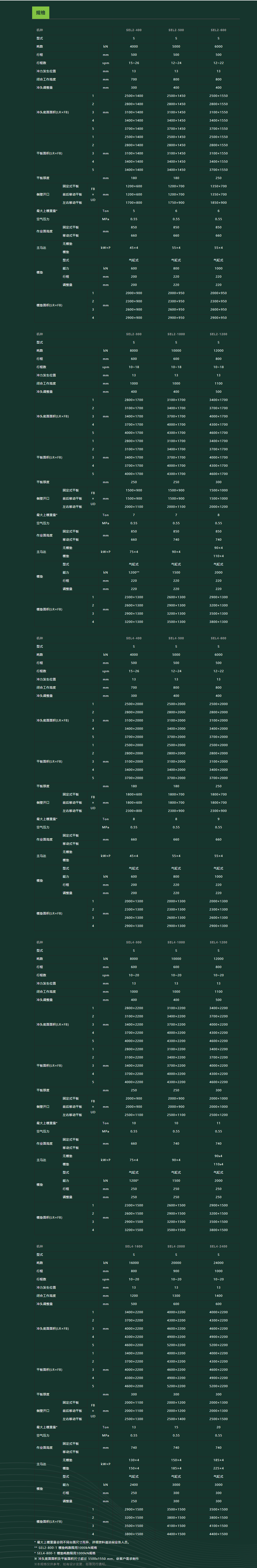 长行程大工件成型加工首选设备 ─ SEL系列,适用于汽车大型钣件成型。采用偏心齿轮连杆传动机构,冲压成型时柔性接触等速加工,大幅减少冲压时震动、噪音及高热,延长镆具寿命、冲件精度质量稳定。低耗能设计,有效节能20%以上。